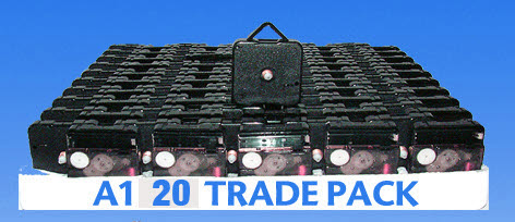 This Trade Pack is for 20 A1 Diamond quartz movements including 20 pairs of clock hands and seconds finger. Please remember to also choice your 2 packs of 10 pairs of hands from the selection below.